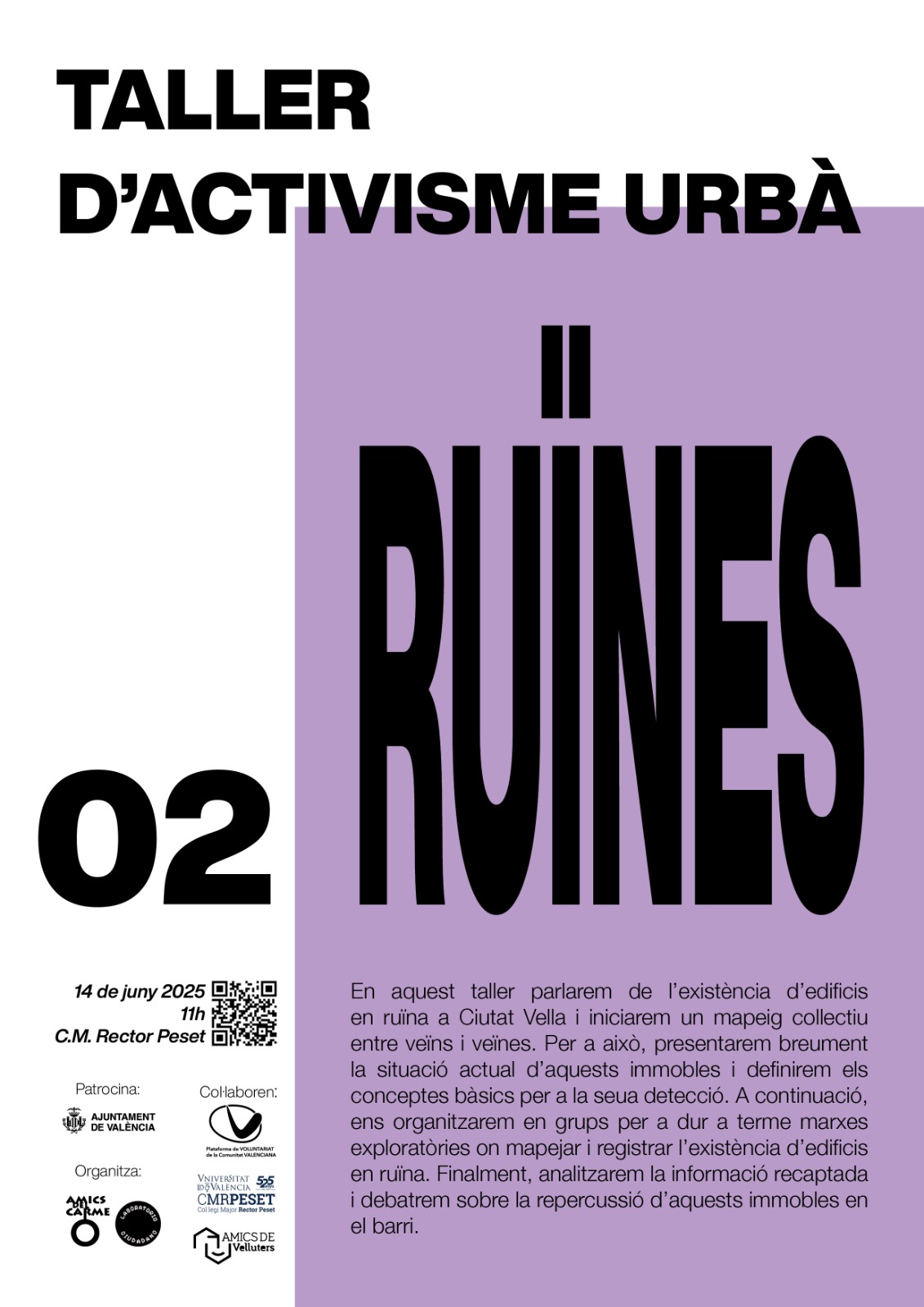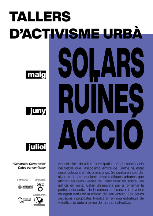 T’esperem el dilluns 14 d’abril a les 18.00 h en la seu d’Amics del Carme (C/ Alta, 51) per a presentar-te el projecte, compartir els primers passos, i explicar-te els tallers participatius que arribaran en les pròximes setmanes.